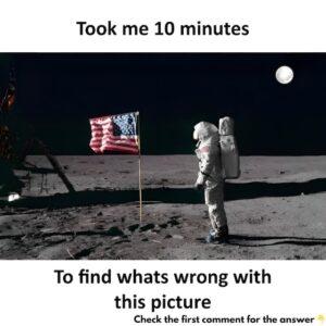 At first glance, this image appears to showcase a classic moment in history—the moon landing. But take a closer look. Something in the photo is terribly wrong….