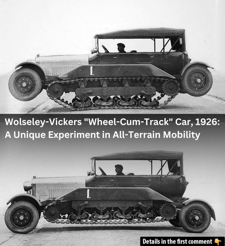 The Wolseley-Vickers “Wheel-Cum-Track” Car, developed in 1926, stands as a fascinating and unconventional experiment in automotive design. Combining the features of both a traditional car and a tank, this vehicle was intended to offer versatility in navigating both smooth city streets and challenging off-road terrains. Although not widely known today, this vehicle remains a testament to the innovative spirit of its creators and their vision for future all-terrain transportation.